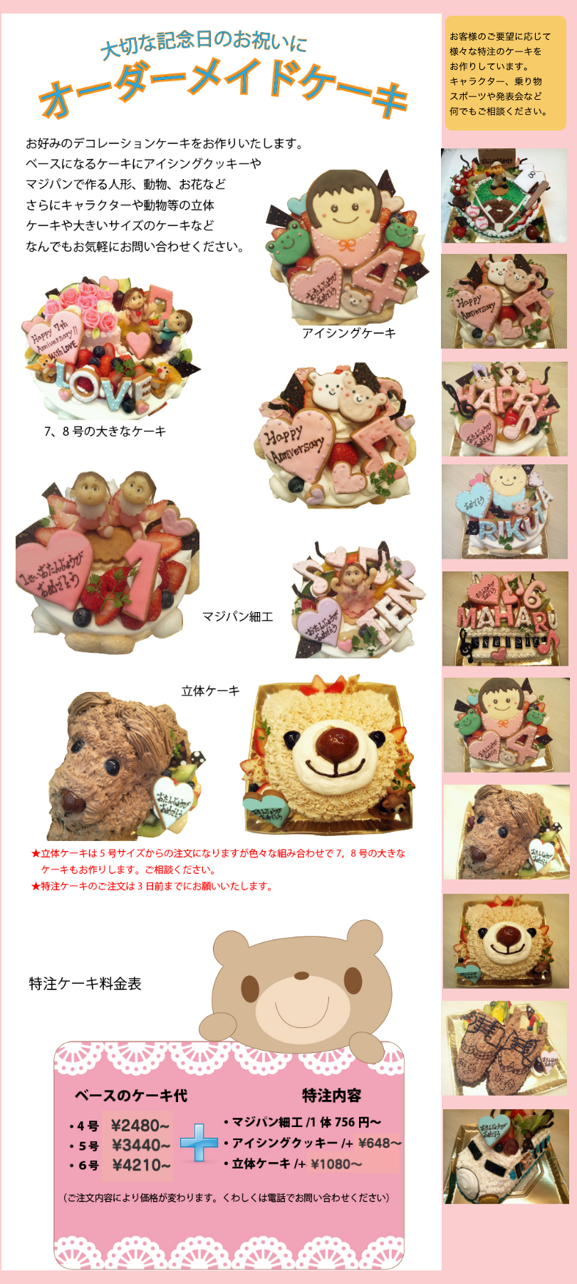 *特注のご注文はご予約3日前までにお願いいたします。